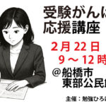 - 2月8日(日)受験がんばれ応援講座~高校入試(日本史・数学)対策講座&国家資格3資格(宅建・賃貸不動産経営管理士・ITパスポート)受験アドバイス&相談会~2026年1月21日(木) 船橋市議(無党派)・予備校講師・2025年国家資格3資格(宅建・賃貸不動産経営管理士・ITパスポート)合格者 朝倉幹晴 以下、皆様(お子さん)の受験を応援する企画を行います。ぜひ […]