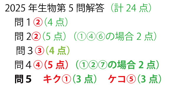 2025年大学入試共通テスト「生物」第5問問題(配点24点)・解答・解説