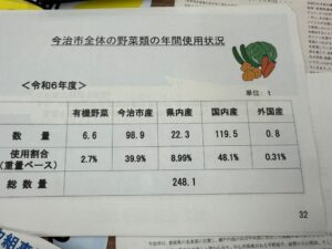 学校給食の野菜も今治産の増加を目指しているが、徐々に増やしている。