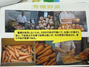 有機野菜の普及にあたっては、不揃いの野菜への理解が不可欠である。調理においても、大きさが不揃いの場合、