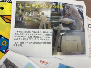 2002年 学校給食用豆腐の原料を、今治産大豆に置き換え