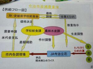 今治産有機米学校給食に関しては、以下のような安定的なフローが確立されている。