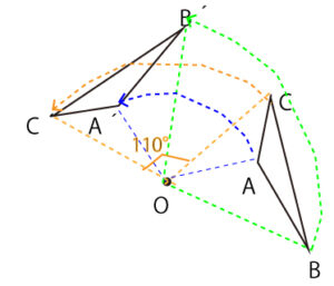 イ点Aが点A´まで移動した跡(あと)は、直線である。×(弧(円周の一部)である)