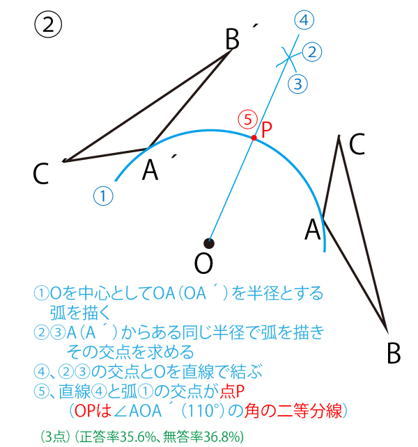 2021年、千葉県公立高校入試「数学」第2問(5)(作図・配点5点)問題・解答・解説