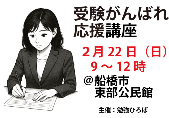 2月22日(日)9~12時、受験がんばれ応援講座@船橋市東部公民館