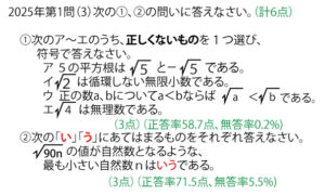 2025年千葉県公立高校入試「数学」第1問(3)(無理数など)問題・解答・解説(計6点)新着!!